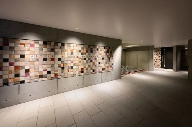 物件エントランスまでのアプローチ空間には、本来廃材予定だったタイルをアートウォールとしてアップサイクルしており、SDGsの一環として、産業廃棄物や処分に伴うCO2排出量の削減に貢献しているとのことでした!