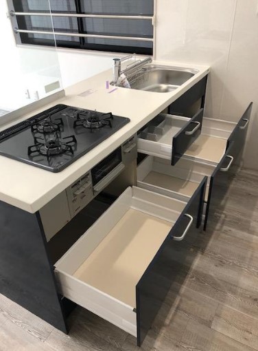 キッチンは、十分な収納スペースがあり、3口コンロも嬉しいポイントです!