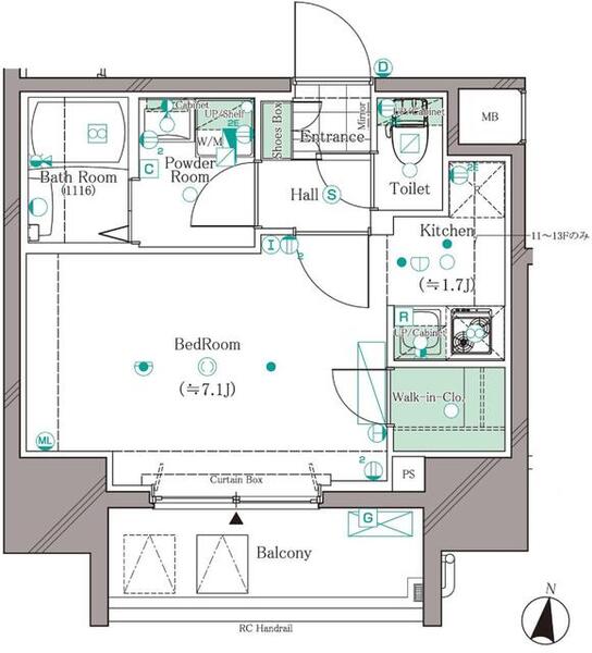 号室・階/間取り/広さ1104号室 / 1K / 25.25㎡